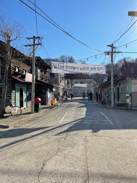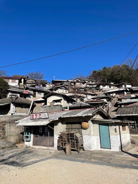 Nevertheless, we arrived at Suncheon Bus Terminal at 1:00 and immediately got a bus to the Suncheon Open Film Set. This filming set, as far as I’m aware, is the largest open film set in Korea. There are three villages in the set each based on a different decade from the 1950s to the 1970s. As an avid fan of Korean dramas and films, I was SUPER excited. None of my favorite dramas were filmed there but some films and dramas I adored were. Check out this list of dramas and films that were shot here.