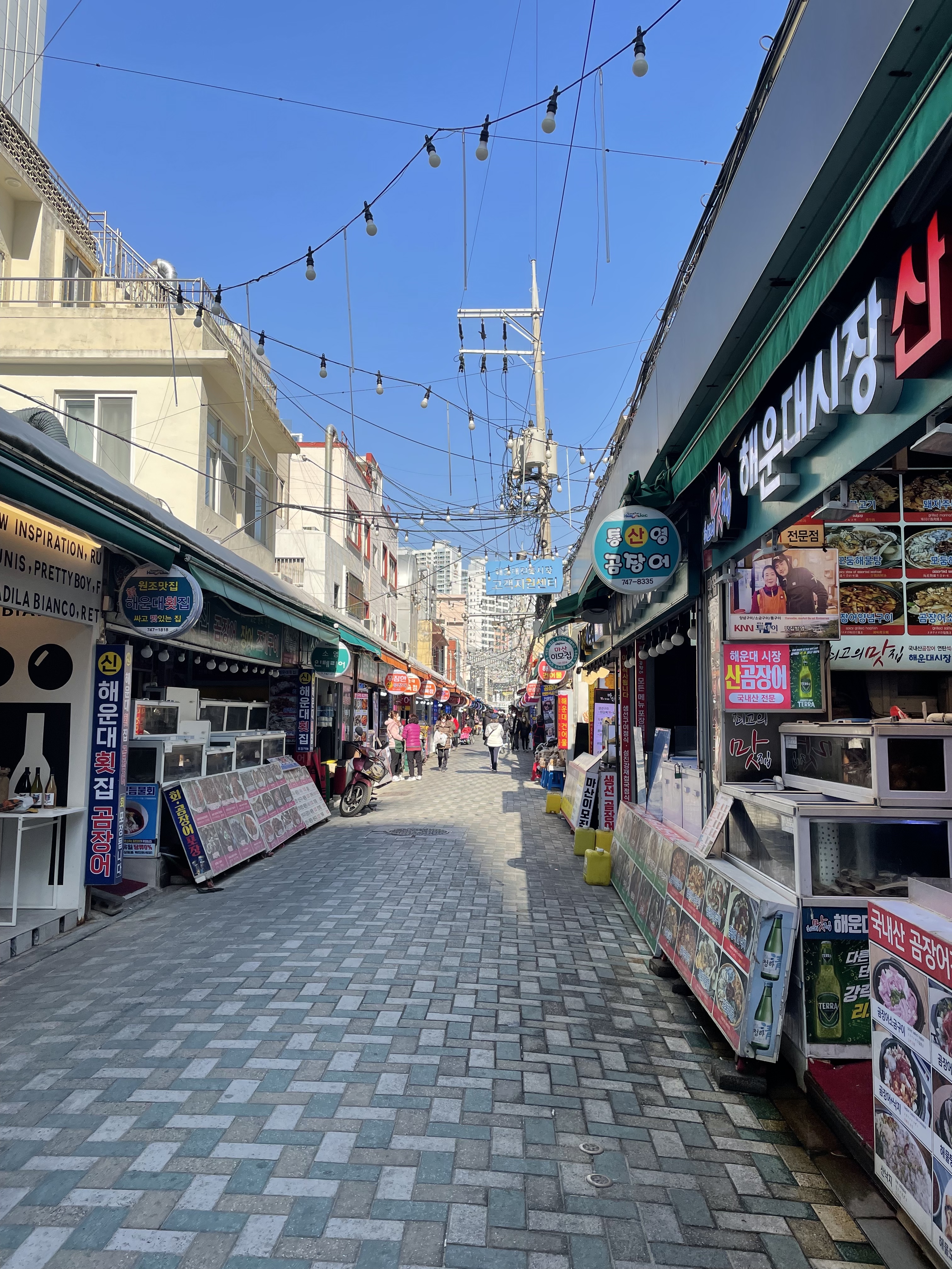 After lunch, we headed over to Blueline Park. At Blueline Park, you can buy a train ticket that faces outwards towards the sea, giving you the best view of the coast. We were lucky enough to get our tickets right around sunset. The view was breathtaking, I’m not sure if the pictures do it justice. The train goes for about 30 minutes, and you can buy a round trip if you want to get back to Haeundae beach. I would recommend the round trip since the station at the end of the train ride does not have much to see around it but the round trips were unfortunately sold out so we took a bus back to the area around the hotel.