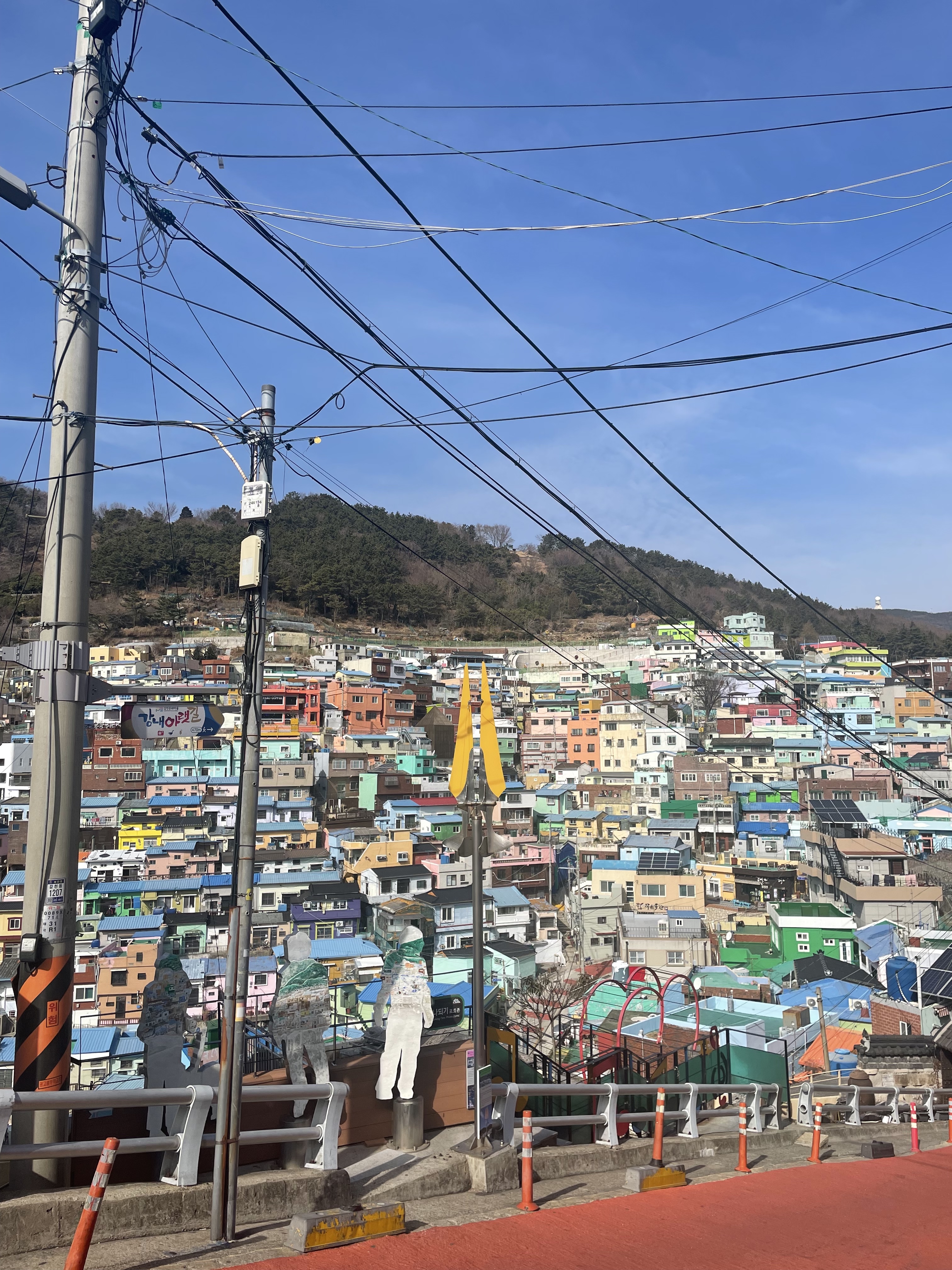We then took the bus to the Gamcheon Cultural Village, a must-see in Busan. From Haeundae beach, it is an hour bus ride and then another 10-minute bus ride to the top of the village. As soon as the village came into full view, I was in awe. Hundreds of colorful houses lined the hills in the village. It was like looking at a painting brought to life. In fact, when I posted a picture on my Instagram, I had several people ask if it was real.