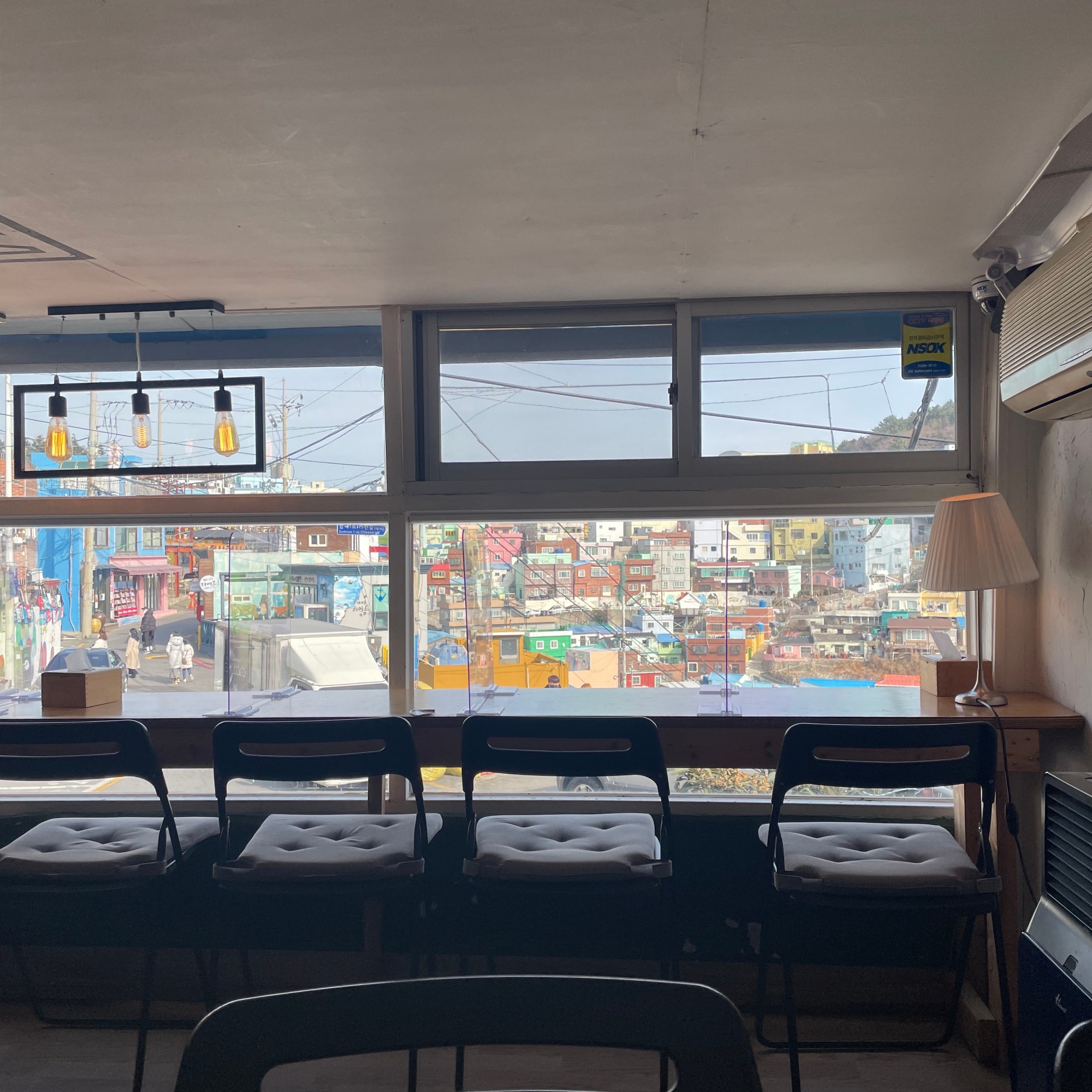 We wandered for a few more hours before finding Duff Coffee. This café could probably have its own blog post entirely. In the center of the village, it is a multi-level building café straight out of a children’s book. As you wait for your drink, you can explore the many wacky rooms in this café. Every inch is covered with something strange. The strangest part might be the live ducks that live in the courtyard and with your purchase of a drink, you are given corn to feed the ducks. If you are in the Gamcheon Cultural Village, you must visit this café. The strangest room for me was probably the bathroom with a life-sized gorilla in the center.