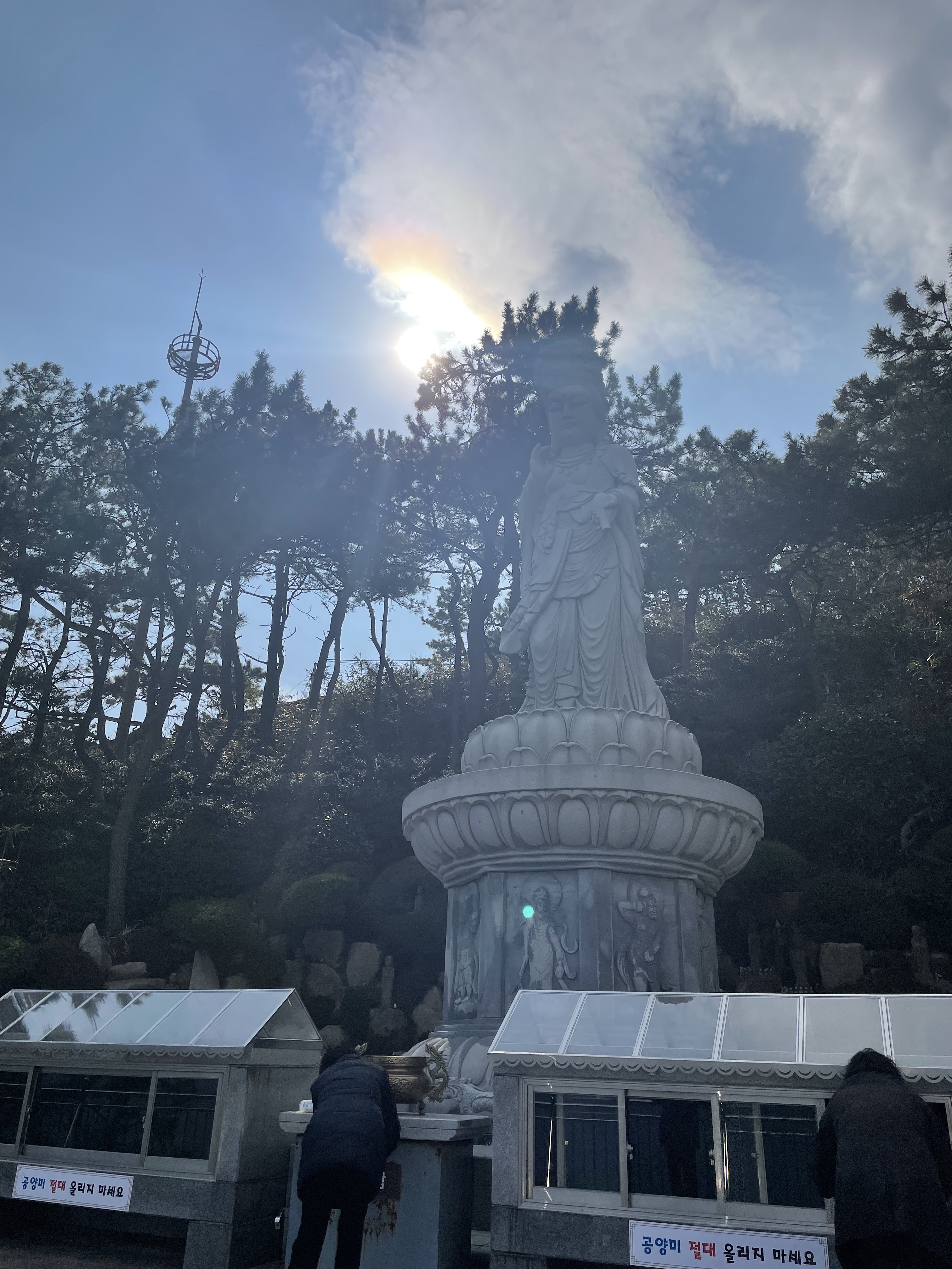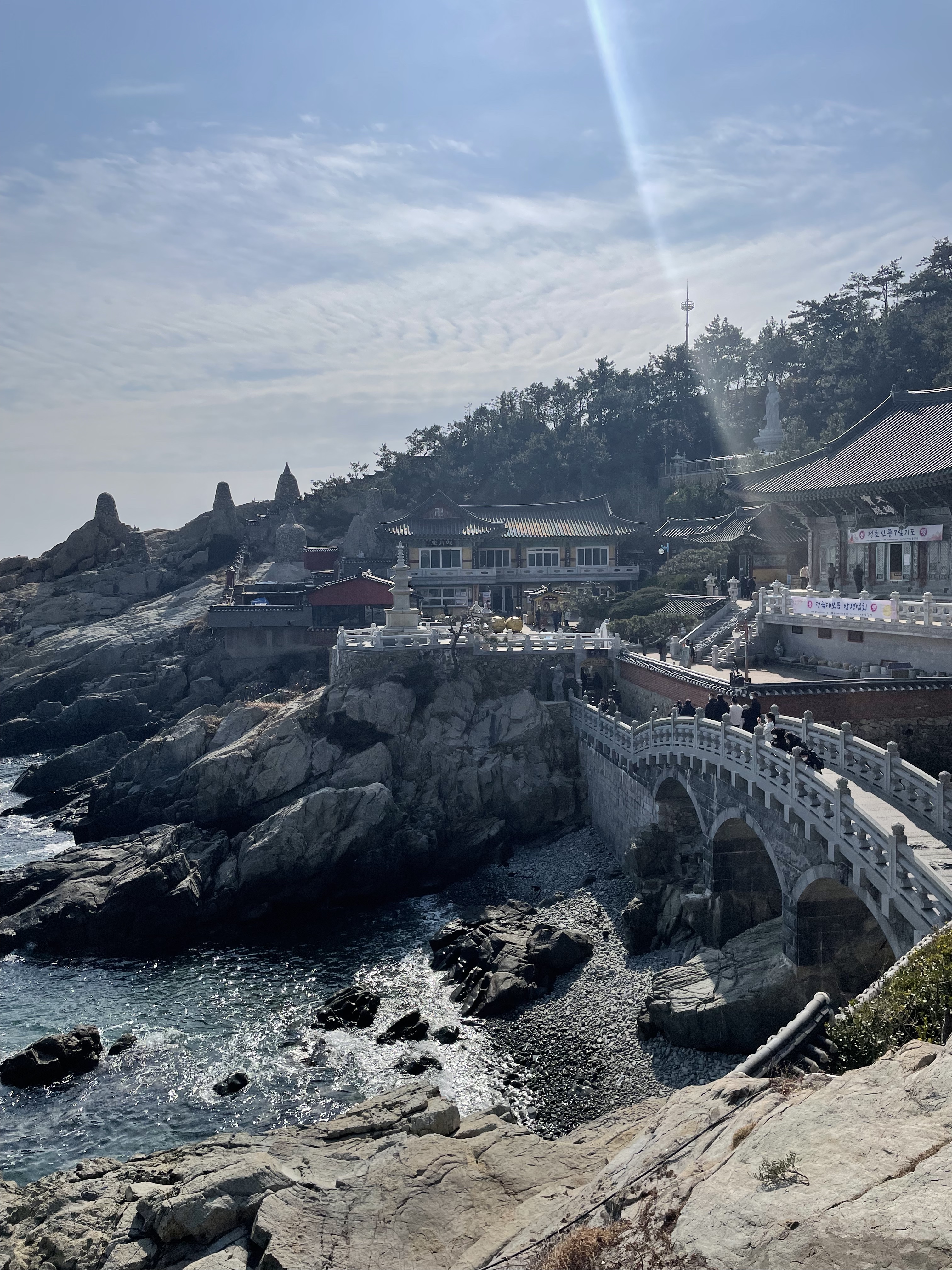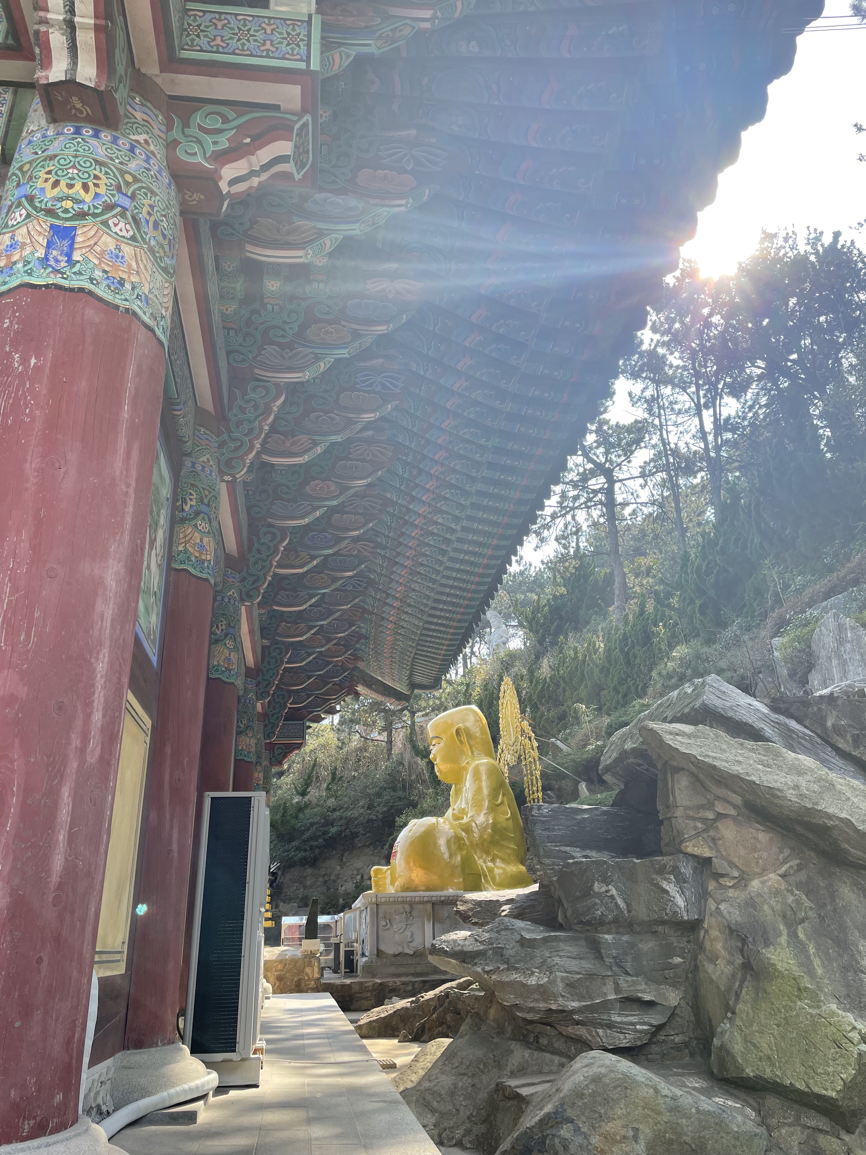 Although I am not Buddhist, I could see how many would feel very spiritual here. Looking out over the sea as a beautiful temple towered over me, I felt so peaceful and relaxed. It does not take long to walk around the temple, but it feels nice to stop and take in the sights along the way. I will say this temple is a tourist spot. So, you will be taken out of your serene moment by an out-of-place banner saying this is “the most beautiful temple in Korea.” But I can’t blame the local government for pushing tourism, especially when I am a tourist myself.