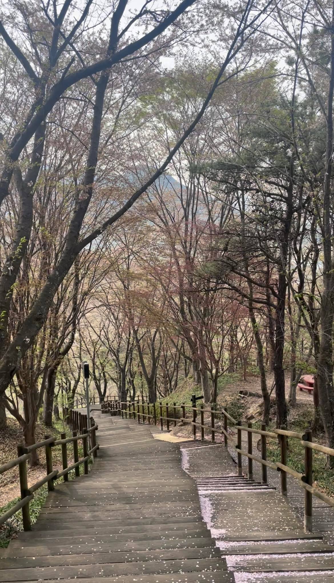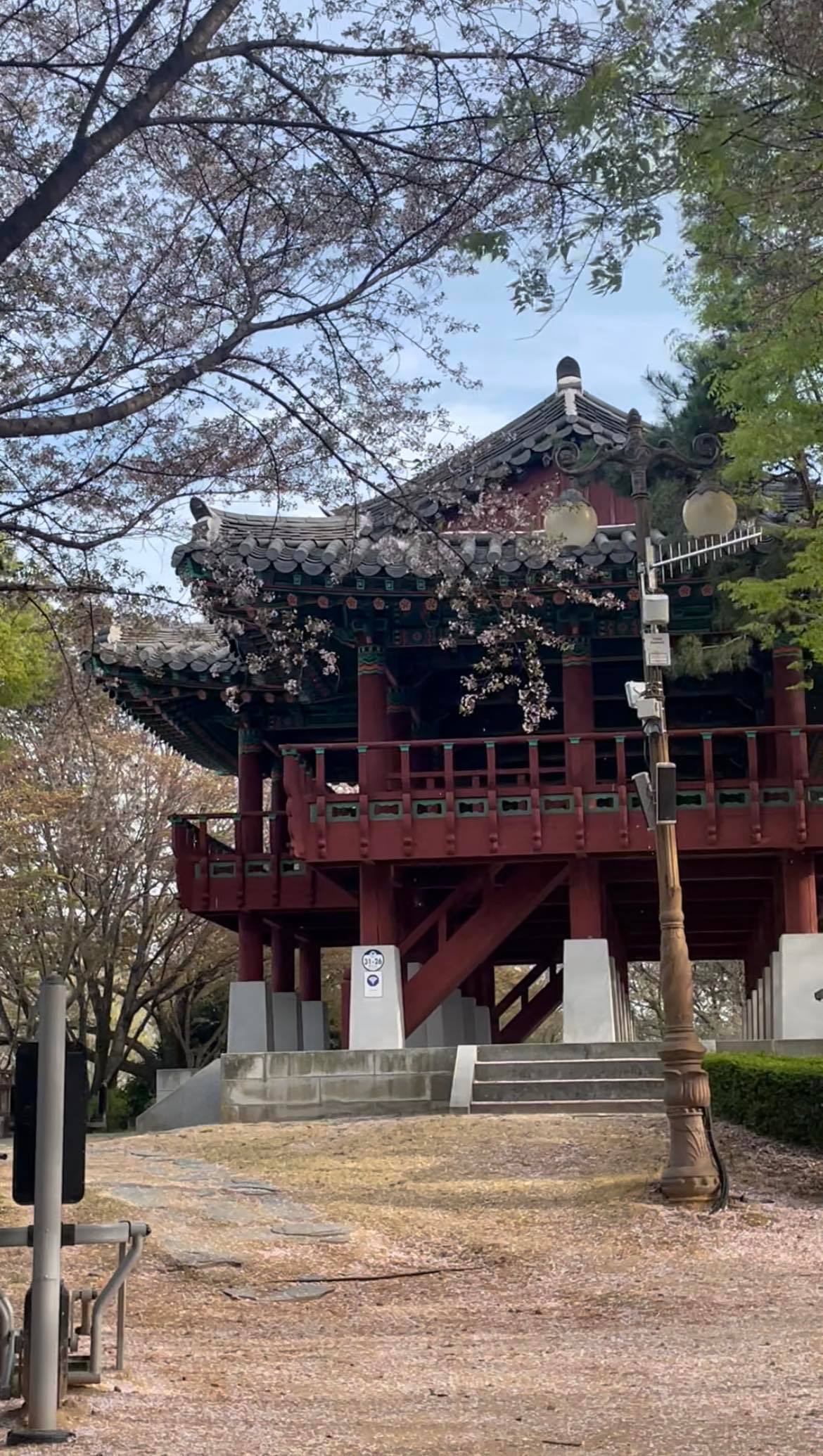 At the very top, there was a pavilion surrendered by cherry blossoms that overlooked the city. It was spectacular, I felt I was transported into a Studio Ghibli movie. We couldn’t spend too long to catch the next bus so we headed back down and to the terminal so we could be back in Gwangju by night.