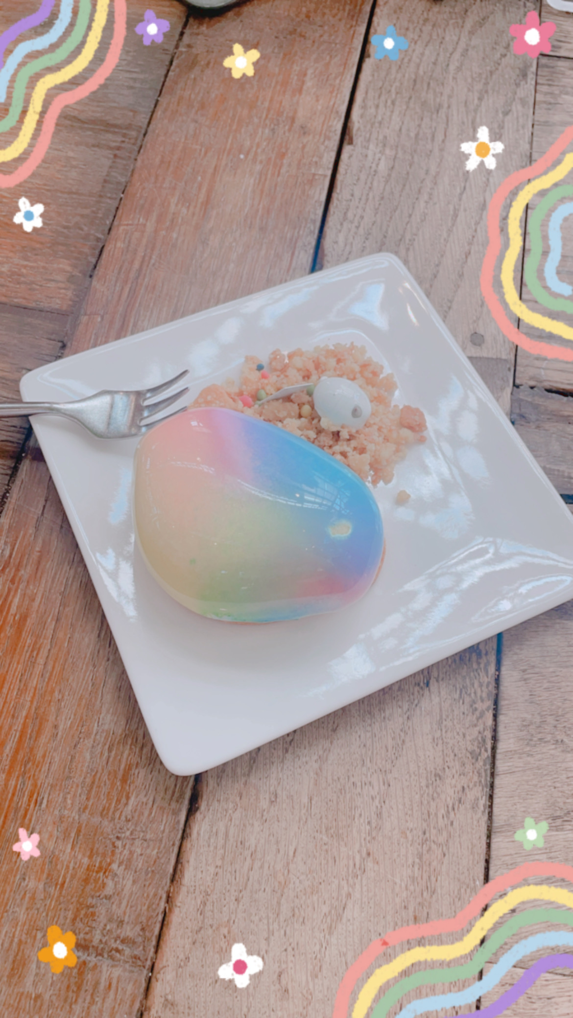 The dessert that made me want to come to the café in the first place arrived and it was yummy as it was pretty. And I can’t be the only one who thinks it looks just like the dragon scale from dragon tales. (I wish, I wish with all my heart…)