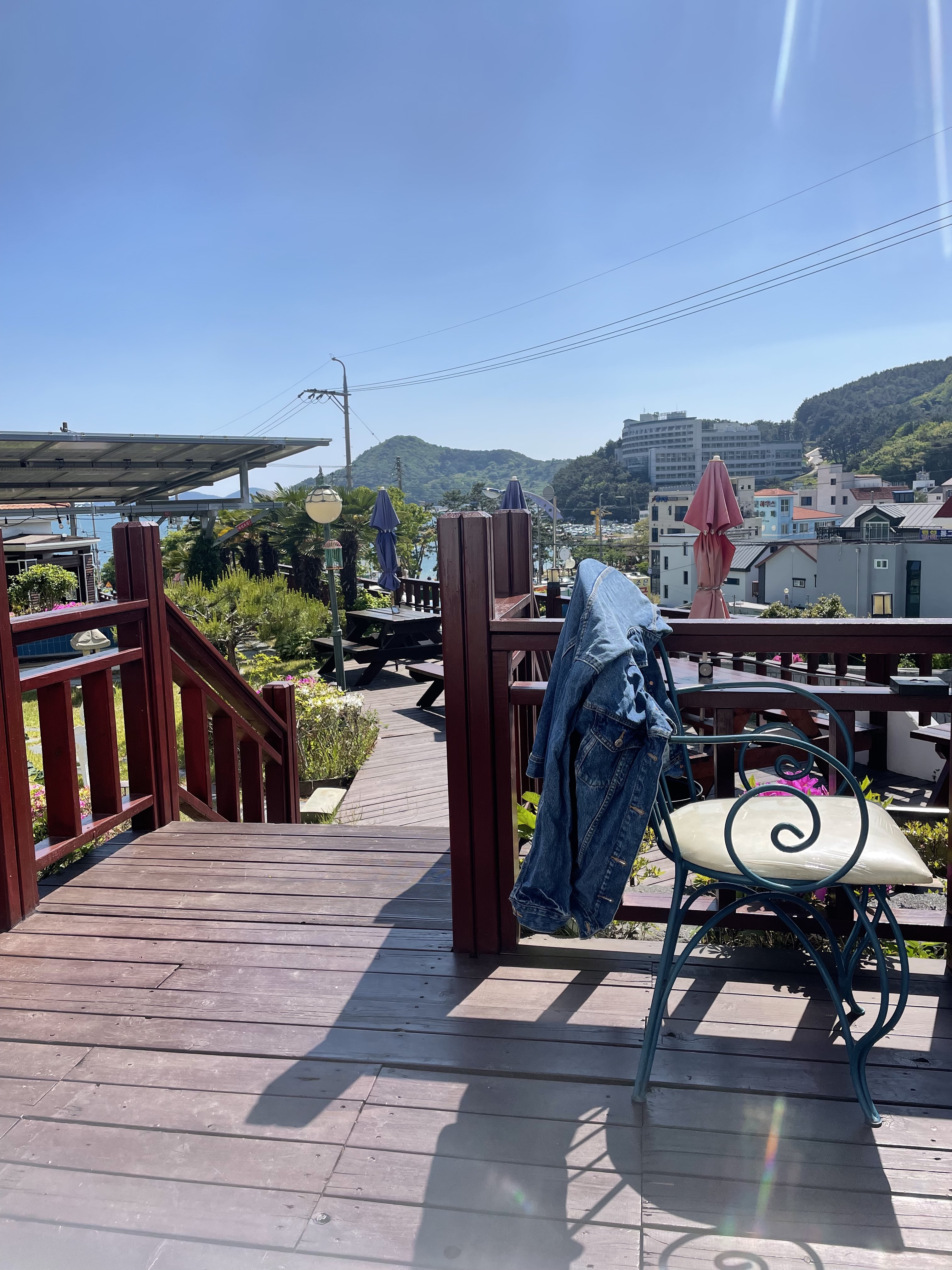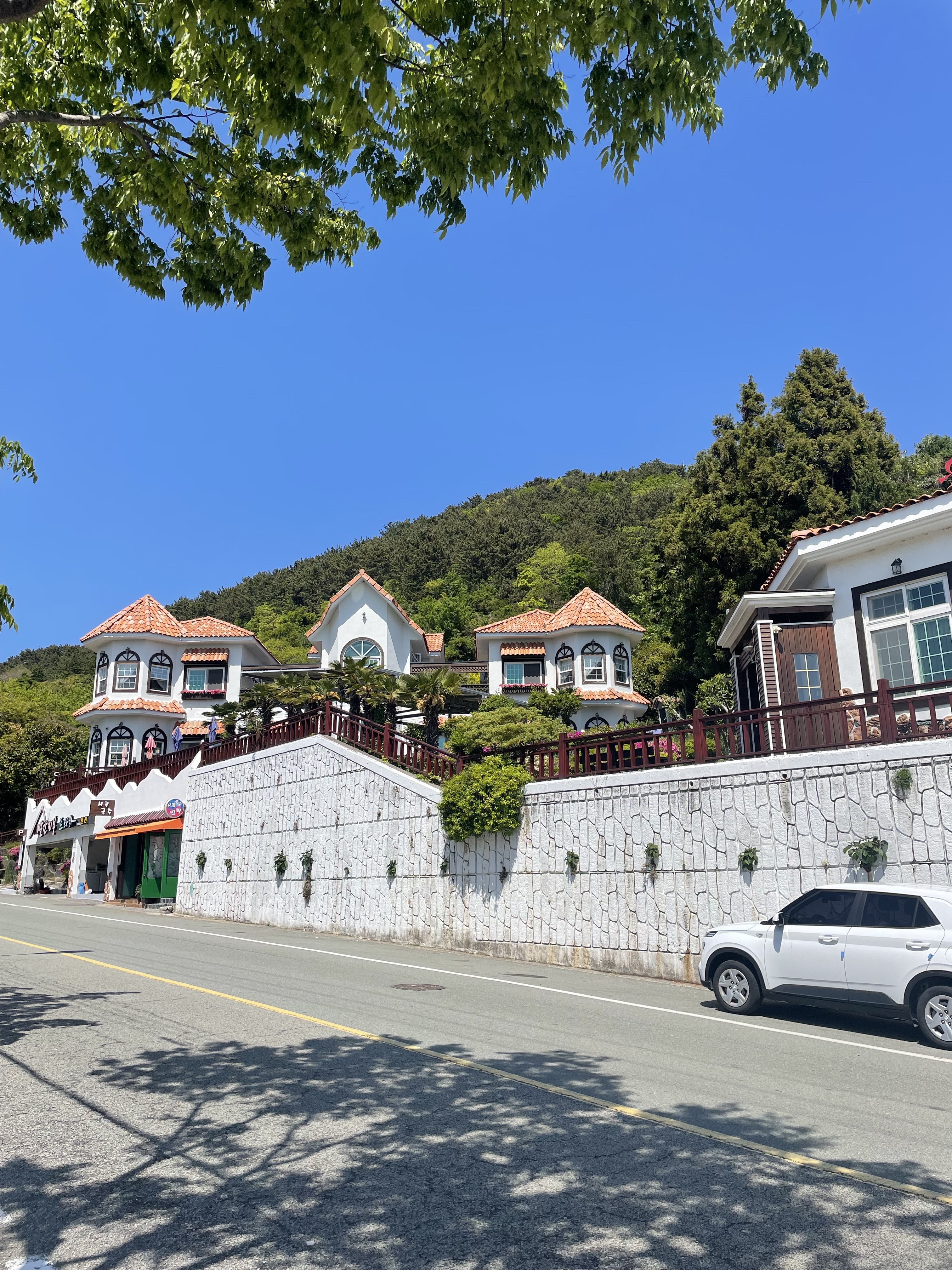 Wahyeon Beach, where we were staying, was very pretty but had a good amount of seaweed and kelp on the shore. After doing some research, I found that one of the supposed best beaches in Geoje was only a 25-minute walk from where we were staying. Just around the corner from Wahyeon is Gujora Beach. Gujora had a small beach town bordering the beach with many cafes and restaurants as well as a sandy beach perfect for lounging by.