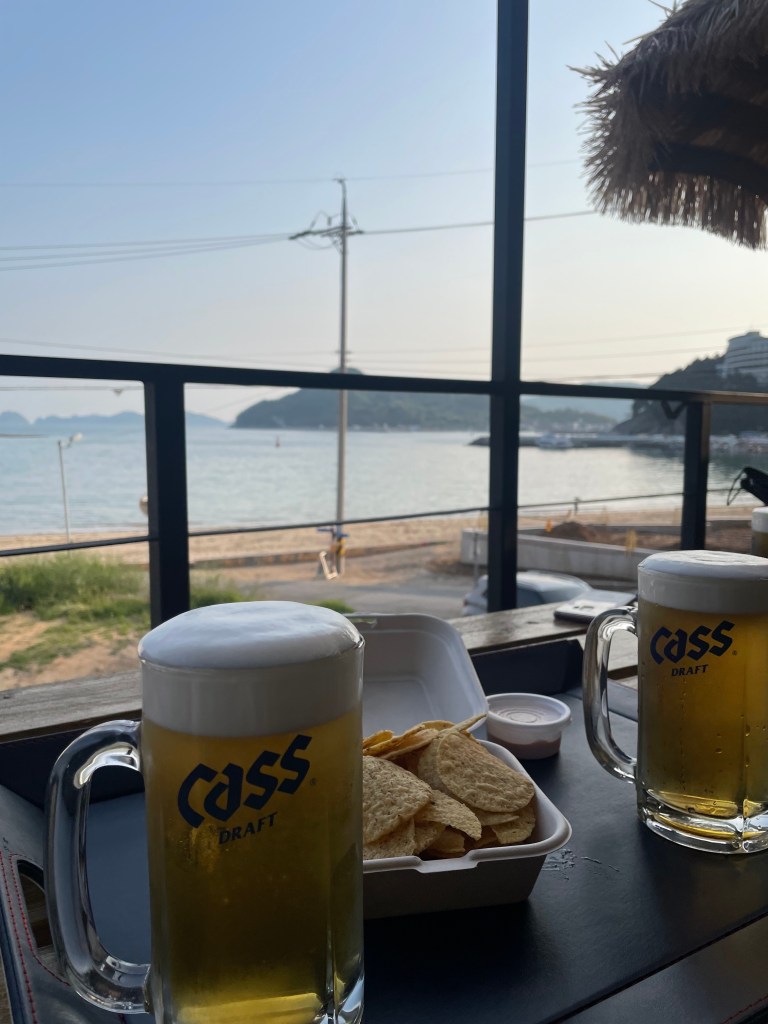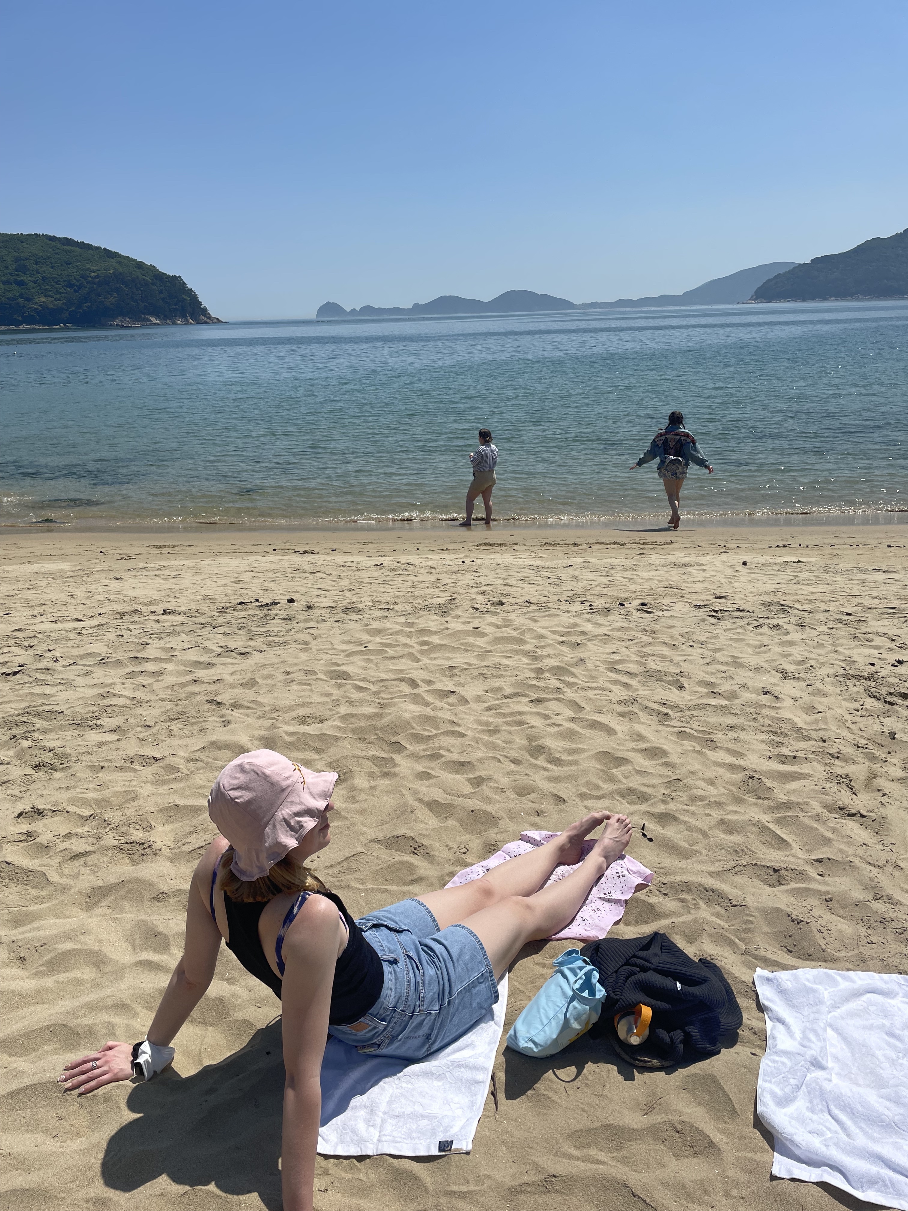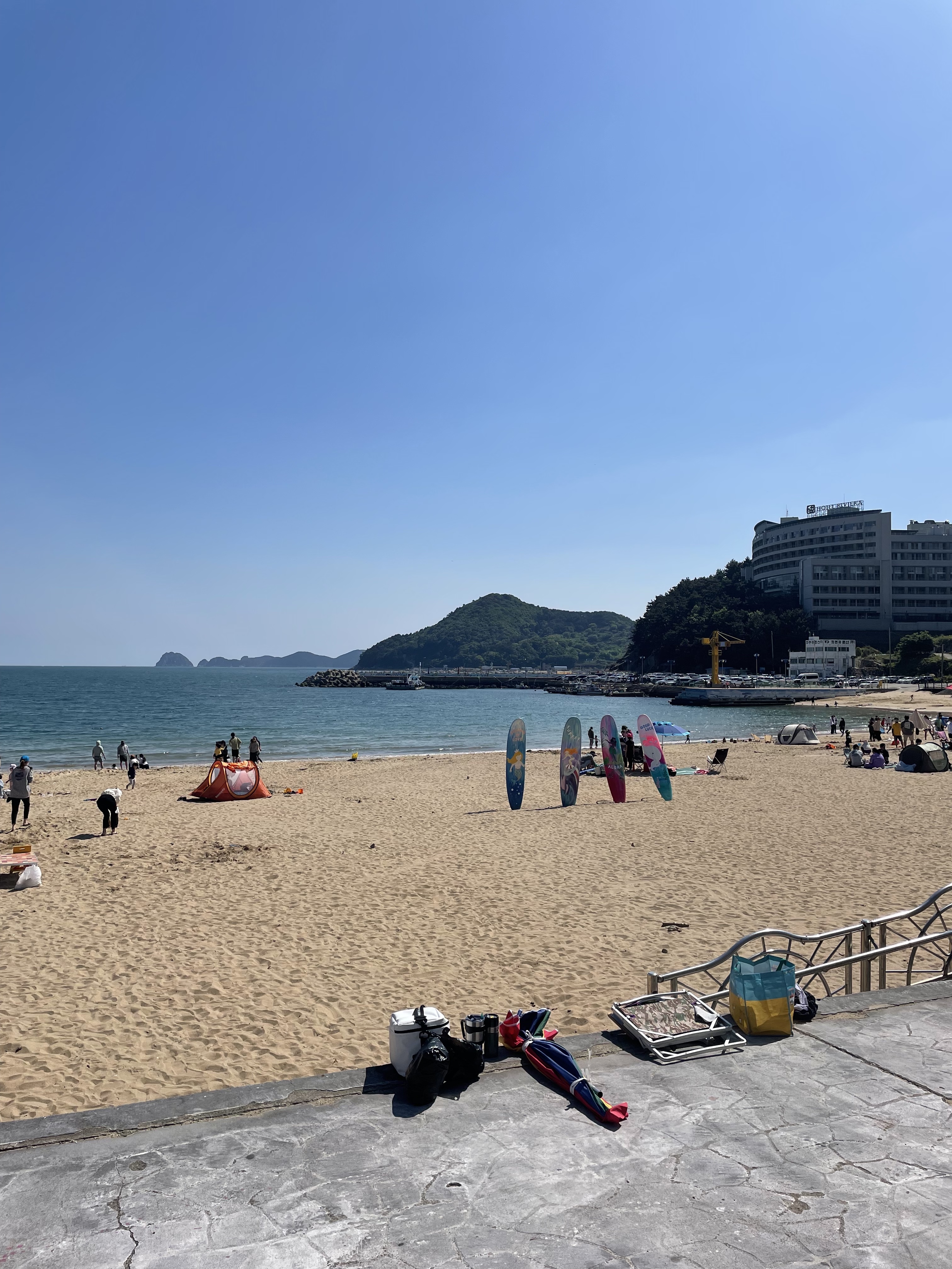 Although it was a holiday, the beach was not crowded at all, and it was easy to find a spot that was all ours. The water was surprisingly clear but a little chilly still so I didn’t swim for as long as I would on a Florida beach. In between many layers of sunscreen, I rested on the beach and found myself dozing off a few times. Usually, my trips around Korea are jam-packed with activities so being able to rest with no plans was a nice change.