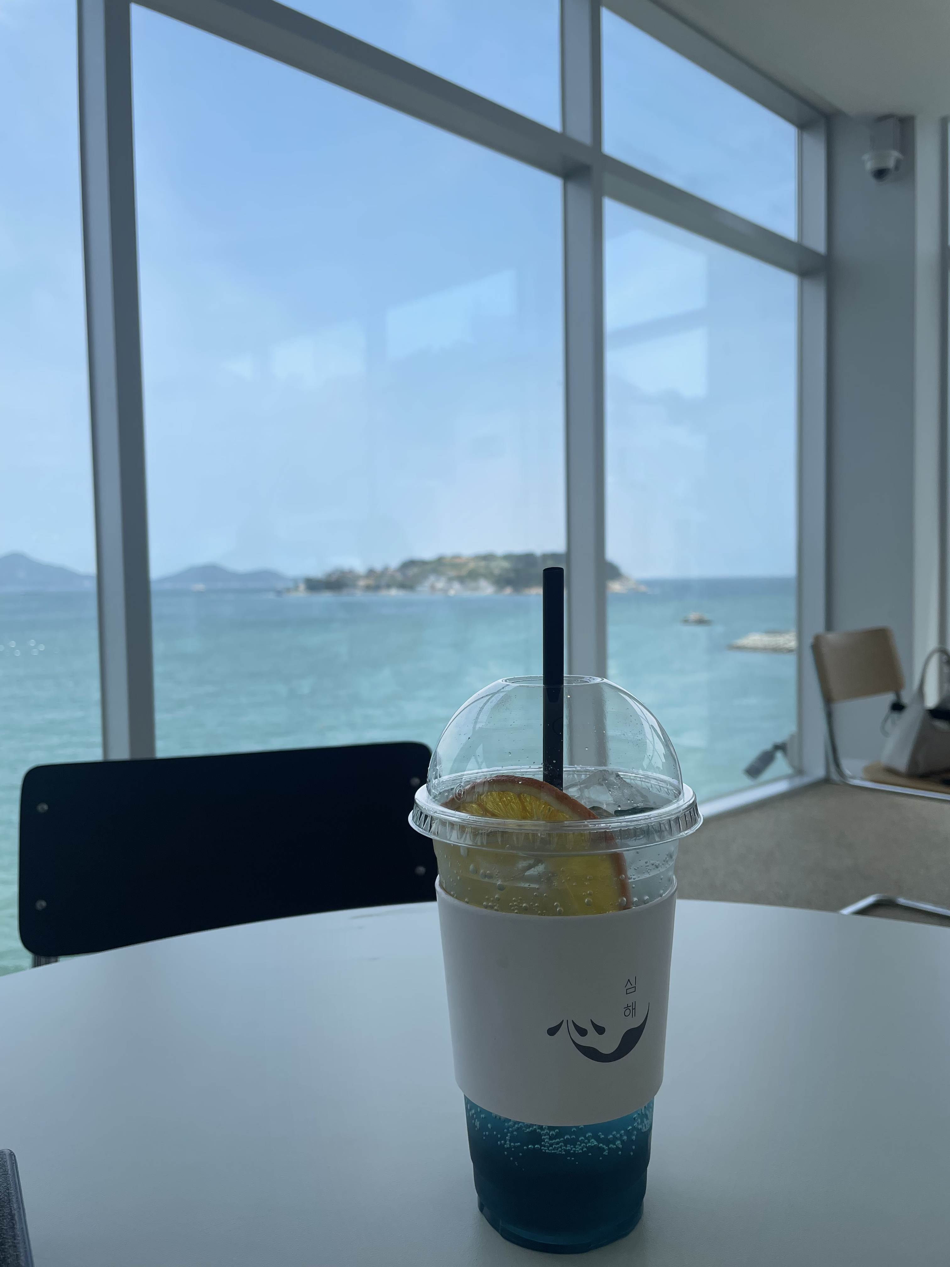 Before we arrived in Geoje, I found a recommended café with some interesting desserts. The most intriguing dessert reminded me of something from my childhood, so I knew I had to go. Oedo Nursery is back by Gujora beach, so we walked back over after lunch. We must’ve arrived during a rush because there was quite a long line out the door but we managed to get our orders in and get a good spot inside.
