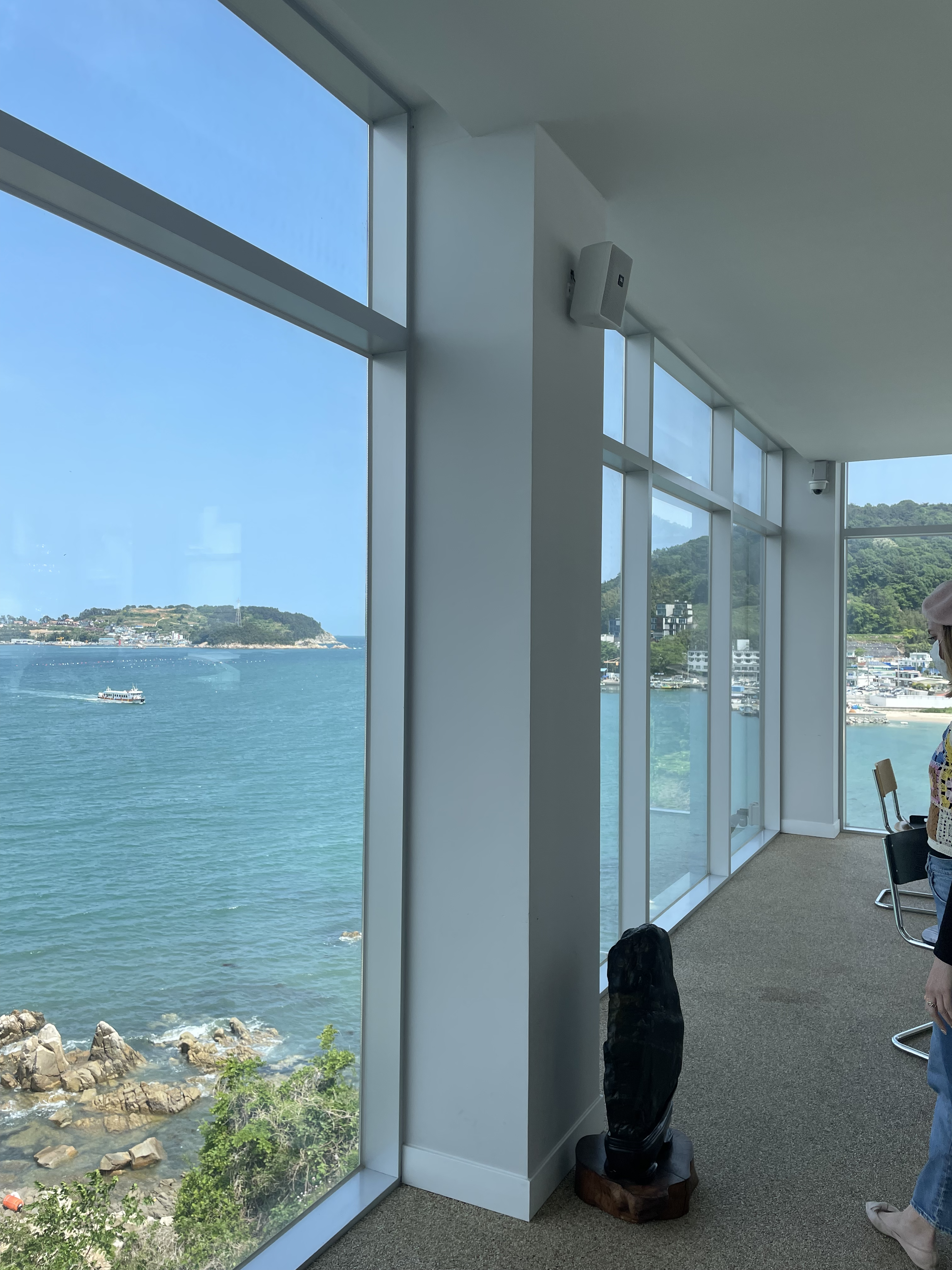 The day before we had bought our ferry tickets to Oedo Island. In 1969, a married couple settled on this tiny island to build a western-style Botanical Garden that encompasses the whole island. It is open to the public for viewing. Luckily one of the docks is right on Wahyeon beach making it easy to be on time for our 9:40 departure. Before we got on the ferry, we had some bagels and coffee by the beach.