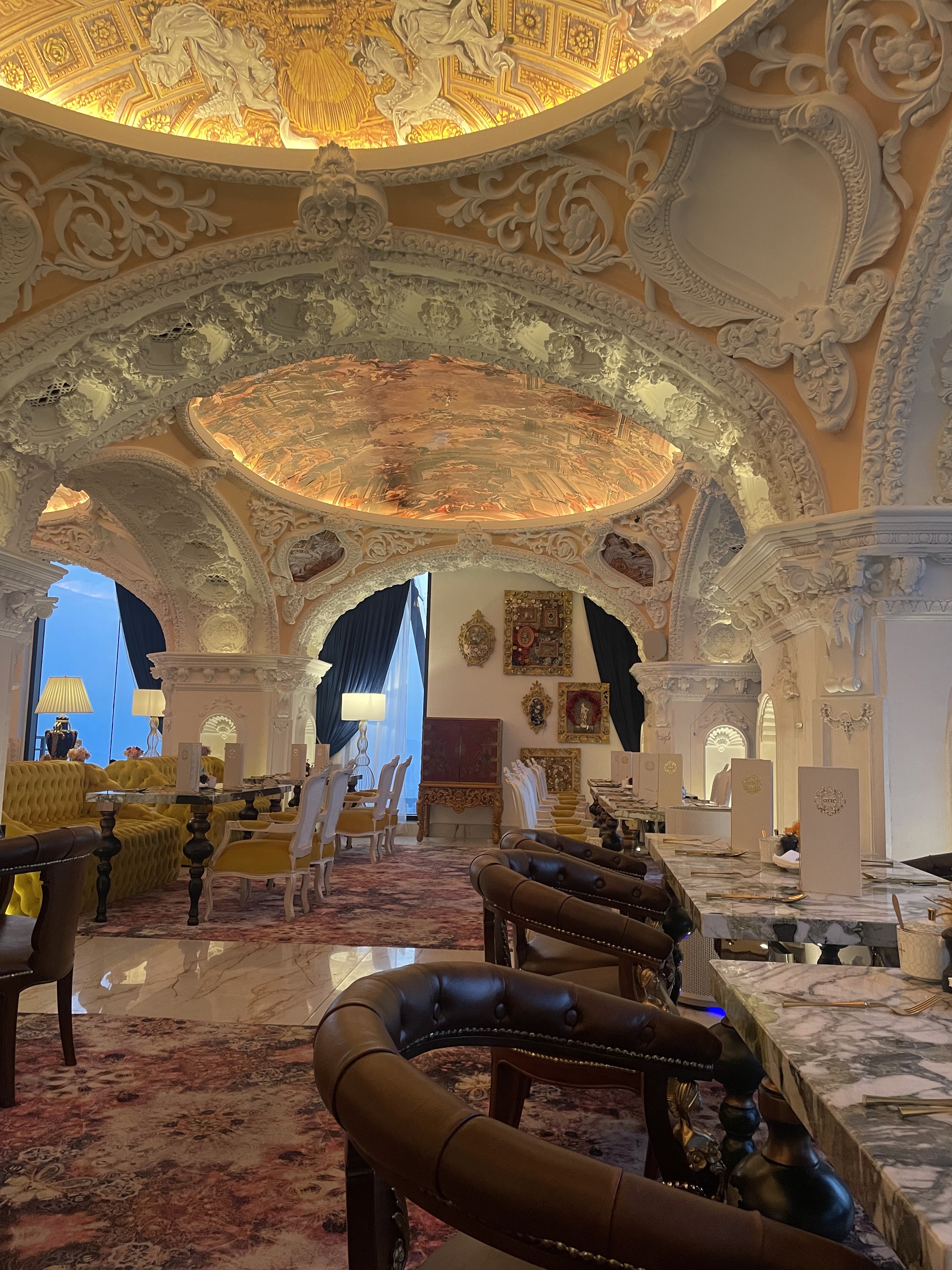 The lobby is all the way up on the 66th floor and as soon as you walk inside, you will be amazed by the design. While many modern hotels take the minimalist, clean interior design, Arte goes all out on maximalism. From the ceiling to the floor, everything is decorated with lux. The bar was my favorite room in the hotel but even the lobby bathroom was picture worthy.