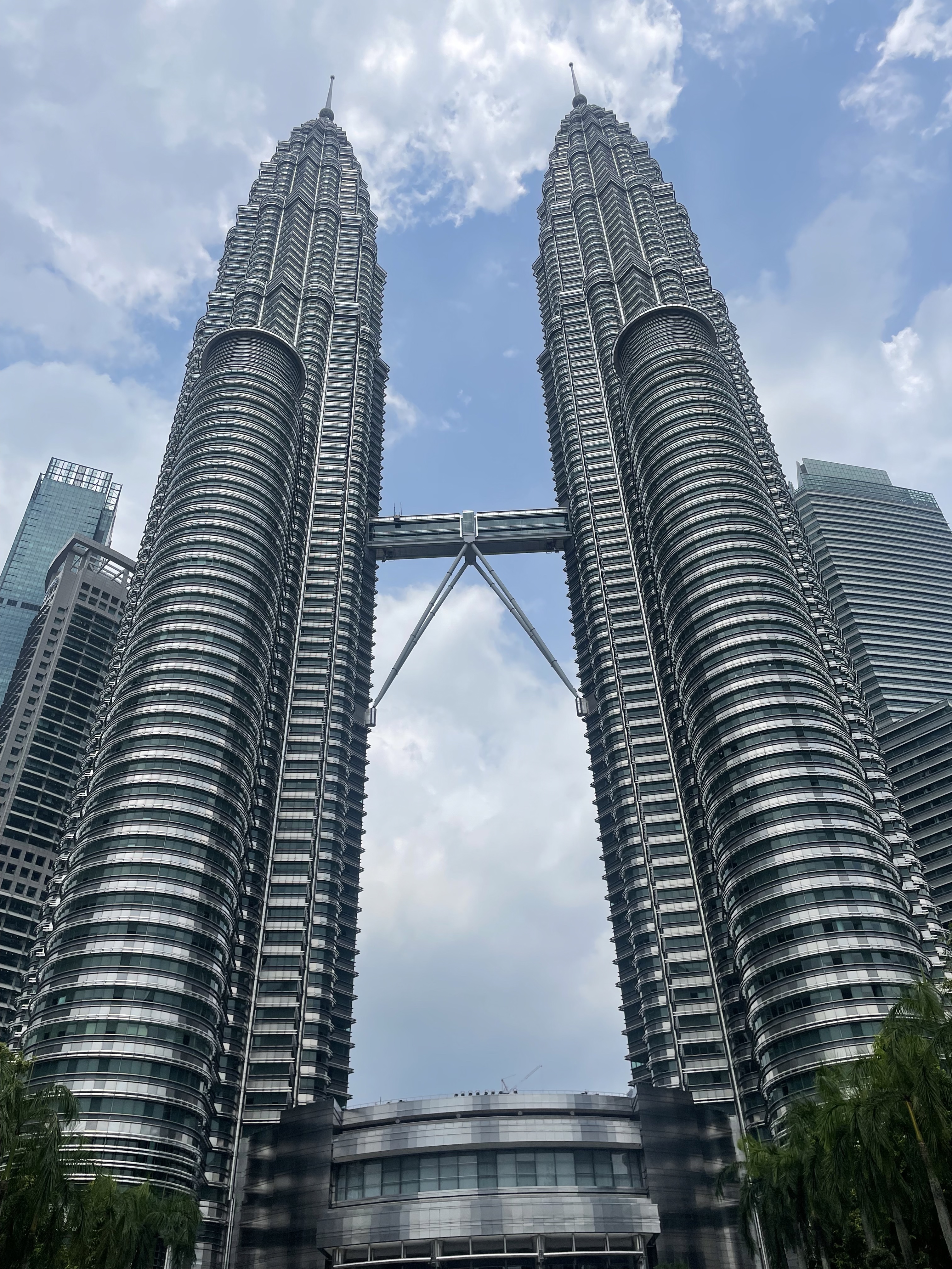 In about 20 minutes by taxi, you can go from the Batu Caves to the city center, KLCC. When we got out of the taxi, we strained our necks to look up at the famous Petronas Twin Towers. Standing at 88 floors they are the tallest twin towers in the world and the 20th tallest building in the world.