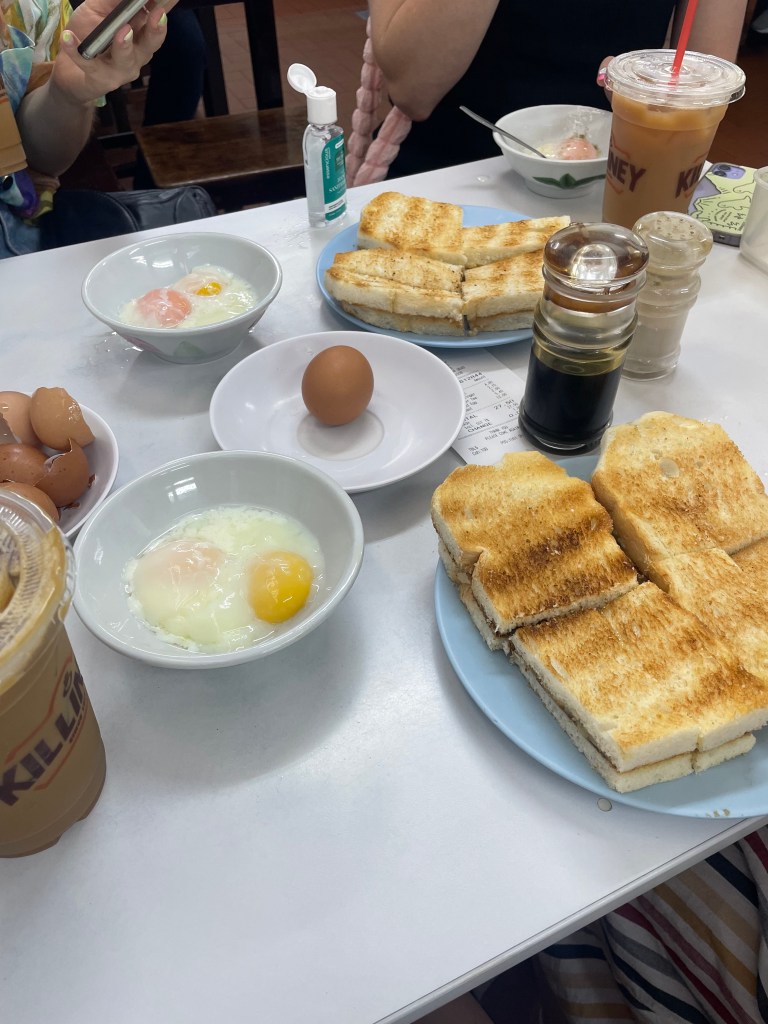 Day 3 started with the simple Singaporean breakfast, kaya toast. I mapped out the closest kaya toast spot and saw we were a 6-minute walk from a place called Killiney Kopitiam. It was a small hole-in-the-wall place but seemed popular. After finding a table, I found online that this specific place was the oldest Hainanese coffee shop in Singapore. This ethnic minority has gone down over time, but its influence is still seen in Singapore. I recommend reading more about the café’s story on its website!