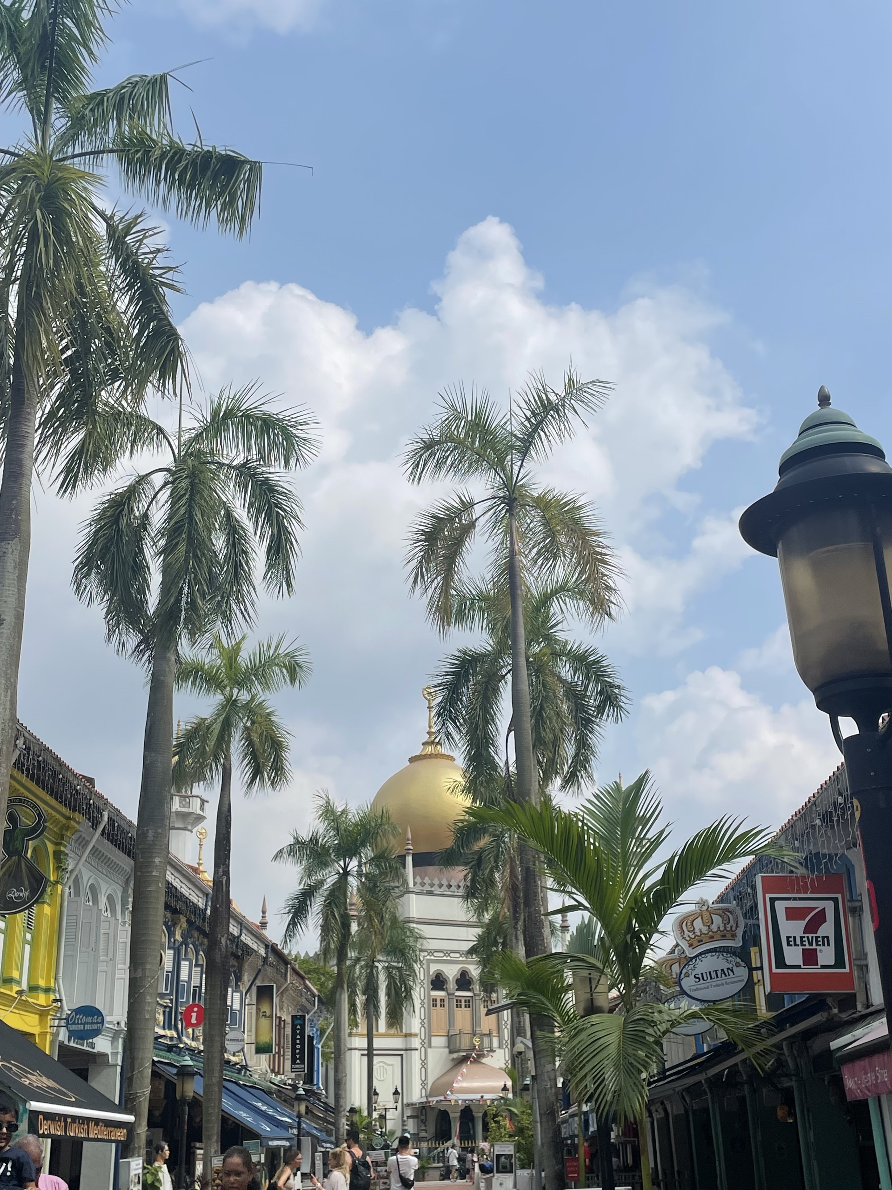 Our next stop was the bright and colorful neighborhood of Kampong Glam. This is the Muslim Quarter of Singapore but also a shopping hub for trinkets and textiles alike. If you tour around the area you will find Haji Lane, a street filled with trendy cafes and boutiques. And in the center, it is impossible to miss the Sultan Mosque. This large mosque has a gigantic golden dome that is surrounded by intricate mosaics. Street vendors will try to pull you in and I can’t deny I bought a couple of useless items (the 2 dollar fan did save me in the heat for an hour or two!).