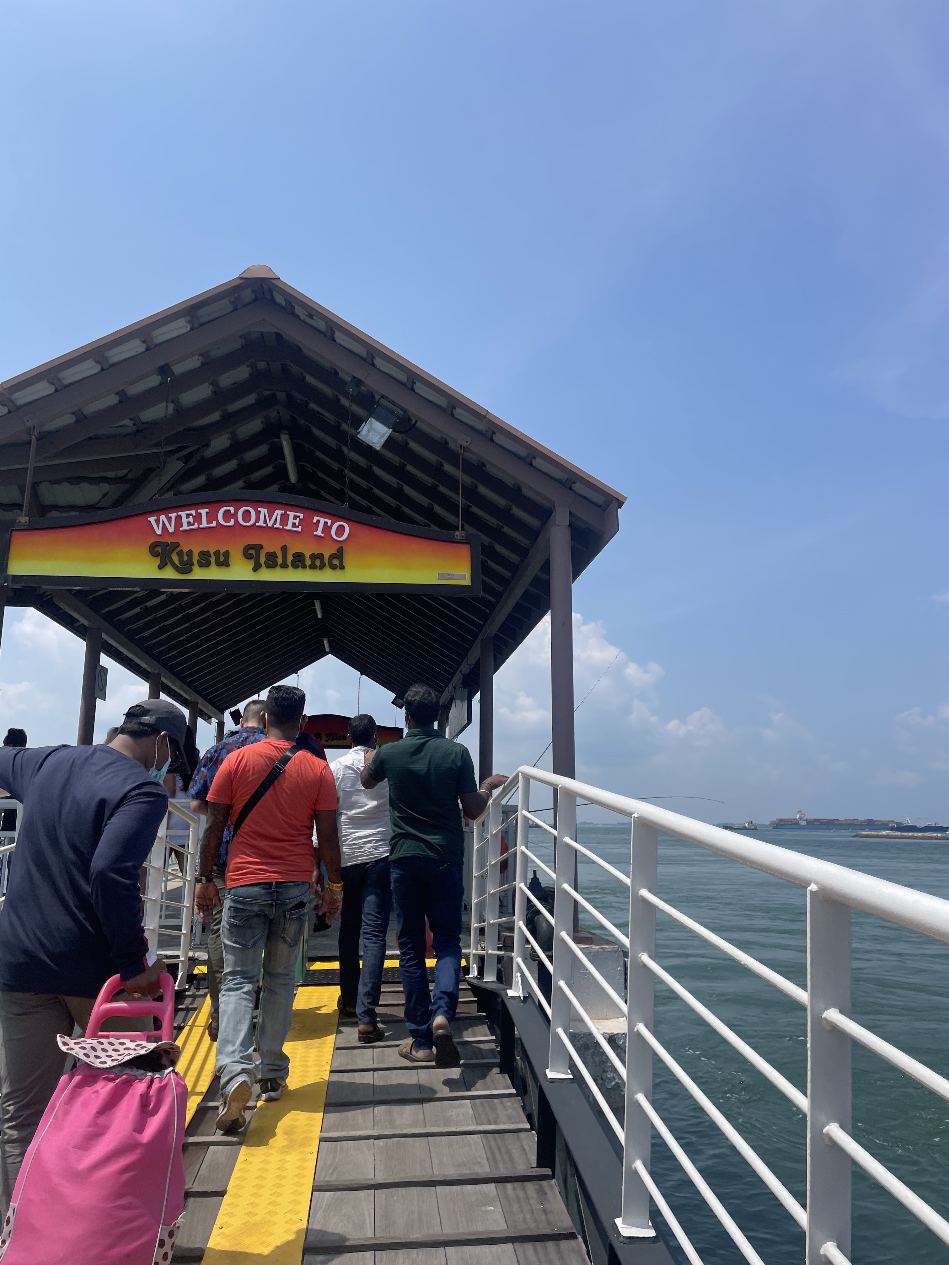To get to Kusu Island you need to go to the Marina South Pier and take a ferry that will last about an hour. You can choose from two companies to buy tickets; the prices were the same. It was $10 if I remember correctly. The ferry will stop at St. Johns Island first, but my friends and I wanted to go straight to Kusu to save time.