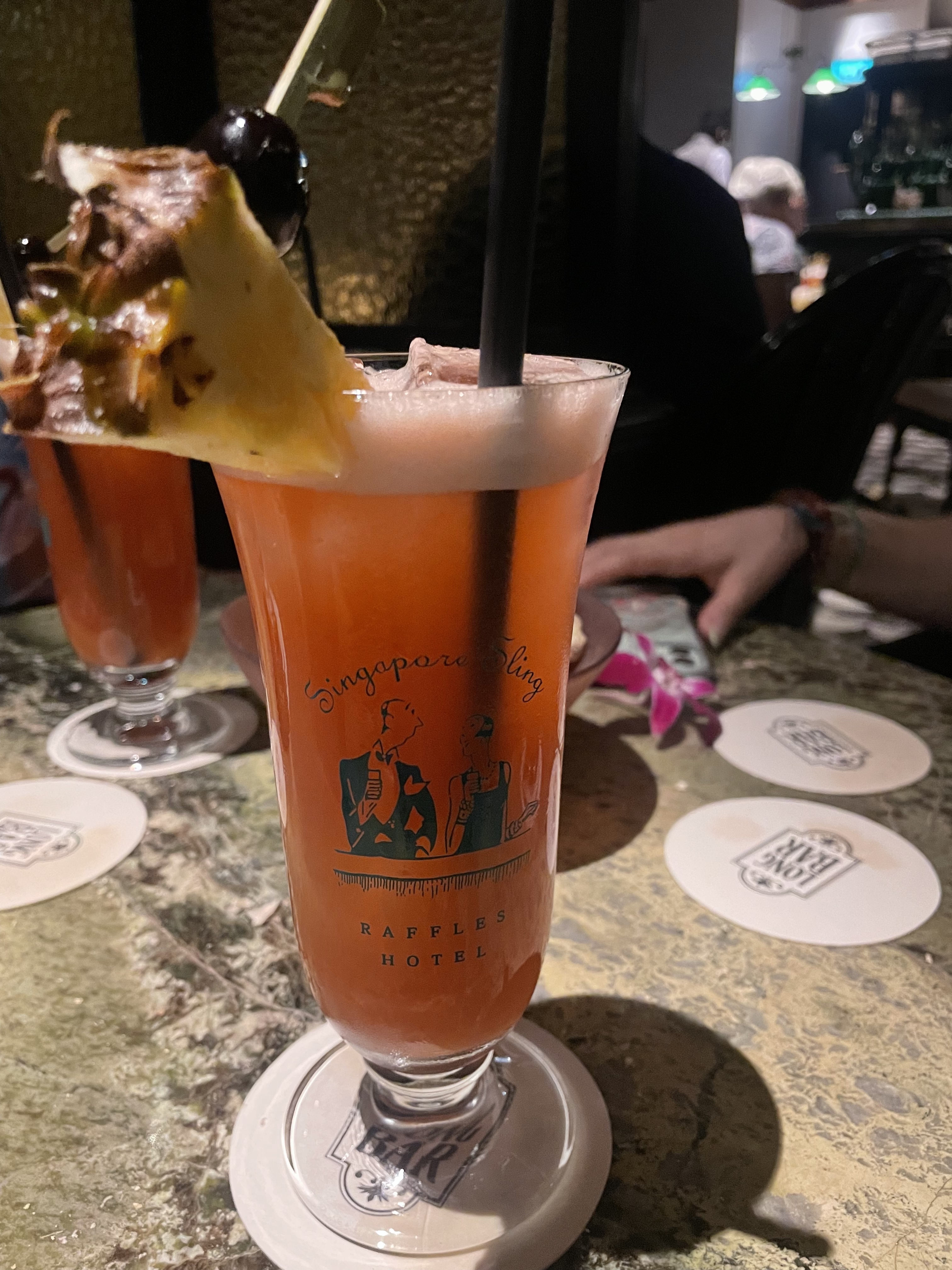 After the fireworks show, we walked to the Raffles Hotel. Have you had a Singapore sling? Ok, but have you had a Singapore sling where the signature cocktail was invented? If not, then grab a seat at the Raffles Hotel Bar.